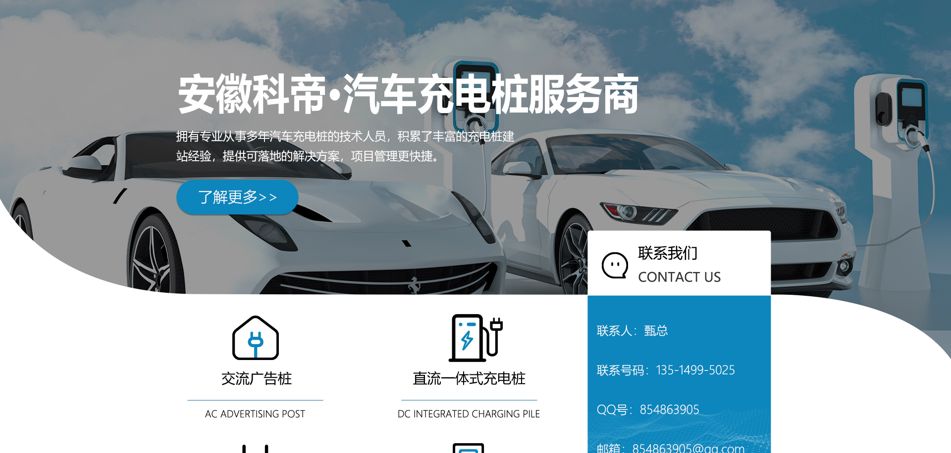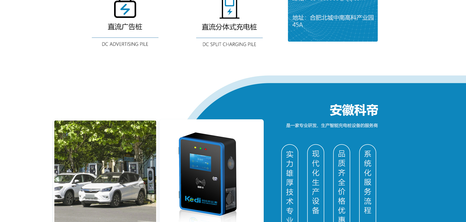 安徽科帝新能源科技有限公司坐落于安徽省會-合肥,是一家研發(fā)、生產(chǎn)智能充電樁設(shè)備,汽車充電站后臺監(jiān)控管理系統(tǒng)和生產(chǎn)高壓開關(guān)設(shè)備的企業(yè).由專門的研發(fā)團(tuán)隊(duì)、管理團(tuán)隊(duì)按照現(xiàn)代化企業(yè)制度規(guī)范設(shè)立的有限責(zé)任公司。致力于為能源智能、安全的應(yīng)用和節(jié)能減排提供整體的技術(shù)與產(chǎn)品解決方案。科帝集研發(fā)、設(shè)計(jì)、生產(chǎn)、銷售以及服務(wù)于一體,在電動汽車充電方案,充電設(shè)施建設(shè)和城市配電方面擁有廣泛的技術(shù)研究及經(jīng)驗(yàn)積累,為客戶提供安全、智能的充電設(shè)備及充電運(yùn)營站建設(shè)一體化解決方案。并堅(jiān)持以人為本、質(zhì)量為先、顧客至上、不斷創(chuàng)新”的企業(yè)理念,為能源行業(yè)的發(fā)展、節(jié)能減排做出重大的貢獻(xiàn)。公司擁有豐富的產(chǎn)品種類,目前科帝已研發(fā)生產(chǎn)了三十多種產(chǎn)品,充電設(shè)備有直流一體式充電樁、直流分體式充電樁、直流廣告樁、交流廣告樁、廣告一體樁、壁掛交直流樁;等多種充電設(shè)備;每一款產(chǎn)品都是精心打造,力求為客戶提供優(yōu)越的用戶體驗(yàn)。展望未來科帝將通過持續(xù)的自...